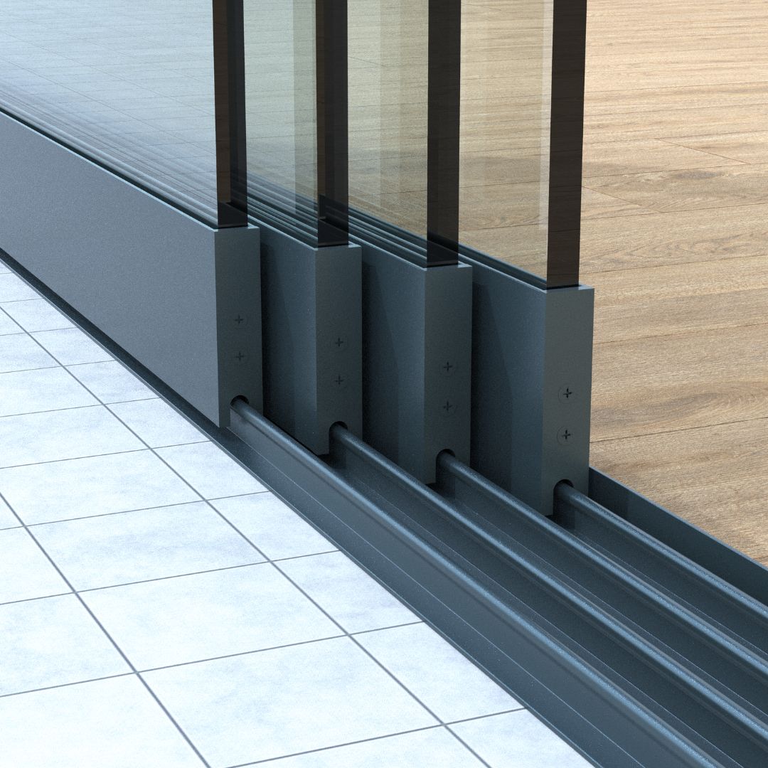 Rosa | 4-railssysteem glazen schuifwand | Helder glas